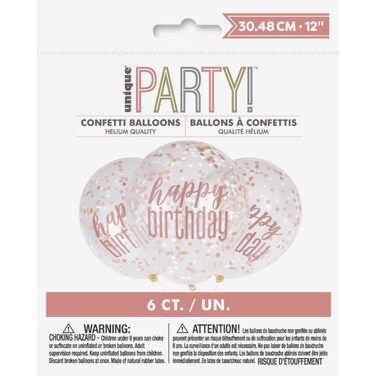- Say "Happy Birthday" In eye-catching style by decorating with these Glitz Rose Gold birthday confetti balloons.