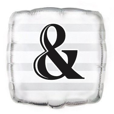 Arrange it with coordinating wedding balloons of your choice to make a stylish backdrop for your refreshment or dessert table. Or, tie it with your other wedding balloons to the back of the wedding couple's chairs to honor them at the reception. When paired with our "Mr." and "Mrs." balloons, this ampersand balloon is sure to make your party or engagement photos even more memorable!. 1 Foil Square Silver "&" Wedding BalloonFoil Balloon measures 18" when fully inflated (ships uninflated)