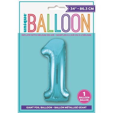 - Make no mistake if you start the festivities with this Giant Pastel Blue Foil Balloon in the shape of a number. Featuring a pastel blue "1" silhouette, the large foil balloon will add eye-catching style to a child's first birthday, or can be combined with other numbered balloons to create a specific birthday or anniversary event number.