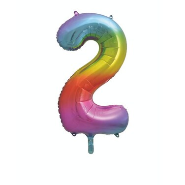 - Make no mistake about where the celebrations begin with this giant rainbow foil number balloon. With its shiny rainbow-colored "2" shape, this large foil balloon is a striking eye-catcher for the ninth children's birthday party or can be combined with other number balloons to create a certain birthday age or a certain anniversary event.