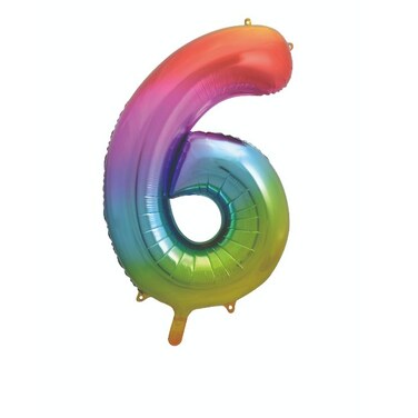 - Make no mistake about where the celebrations begin with this giant rainbow foil number balloon. With its shiny rainbow-colored "6" shape, this large foil balloon is a striking eye-catcher for the ninth children's birthday party or can be combined with other number balloons to create a certain birthday age or a certain anniversary event.