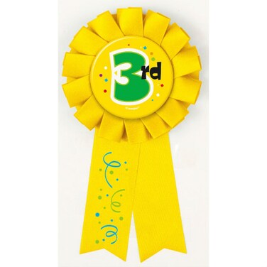 Easy to attach to any fabric or article of clothing with the safety pin backingUse to reward a third runner-up after a party game, sporting event, or school competition