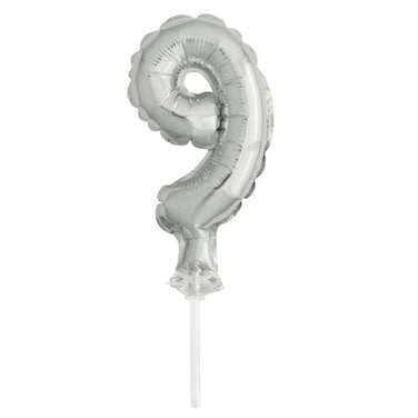 - Serve your cake with a lot of style by decorating it with our silver balloon number 9. This brilliant cake topper measures 12.7 cm and will make your cake stand out. To inflate, place the second straw provided above the attached straw and blow.
