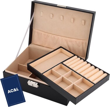 AC&L Jewelry Organizer Box For Girls And Women, PU Leather 2 Layer Jewellery Storage Box Case For Earing, Necklace, Bracelet, Rings And Accessories (Black)