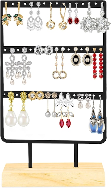 • Beautifully crafted metal with Wood Base, you will organize your earrings, studs, chains and bracelet neatly, beautifully and harmoniously