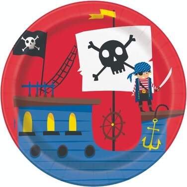 These plate comes in blue and red colour with a pirate ship design.Pack of 8
