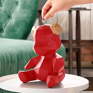 Aiwanto 1pc Money Bank Little Bear Piggy Bank Resin Animal Piggy Bank Teddy Bear Piggy Bank Piggy Bank Coin Bank Saving Pot Money Box Home Decoration Gifts for Kids (Red)