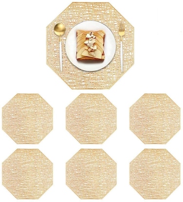 Aiwanto 6 Pieces Gold Table Place Mats Dining Table Decorative Placemat Washable Table Mats Set