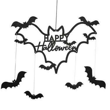 Take a look at the rest of our Fright Night range to create a spookily stunning Halloween party.Each pack contains:1 x black wooden wreath measuring 45cm (W) and 33cm (H) x 1cm (D)2 x 14cm (W), 2 x 9cm (W) black wooden bats to hang2m length of string to assemble.