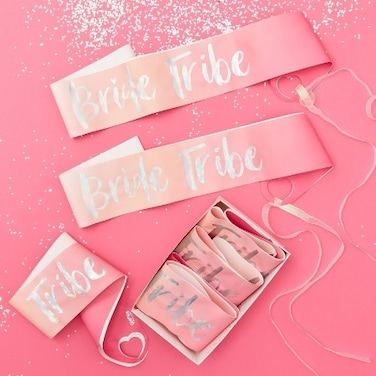 The pink sashes have stunning iridescent foiled "Bride Tribe" foiling design which is sure to be loved by all the hens! Thread the pretty pink ribbon through the sash to fasten - one size fits all!Sash measures: 10cm (W) x 77cm (H) when folded. Six sashes included in the Pack.