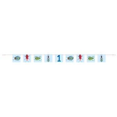 Add even more buzz to the birthday with our other bug themed party supplies and decorations.Details:• 1 Bug 1st Birthday Banner• First Banner measures 7ft long• Contains 9 square pennants each measuring 6" x 6"• Hang it across a doorway or above the cake table• Great for an insect or bug theme first birthday party• Combine with other Bug 1st Birthday party supplies