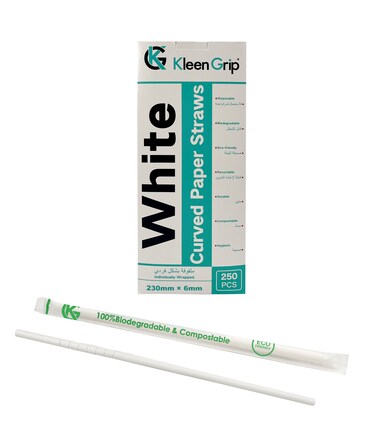 Sustainable straws that don’t get soggy. We make our environmentally responsible choices by serving beverages with Kleen Grip individually wrapped paper straw! Eco-friendly disposable straws made with 100% biodegradable environmental friendly materials.