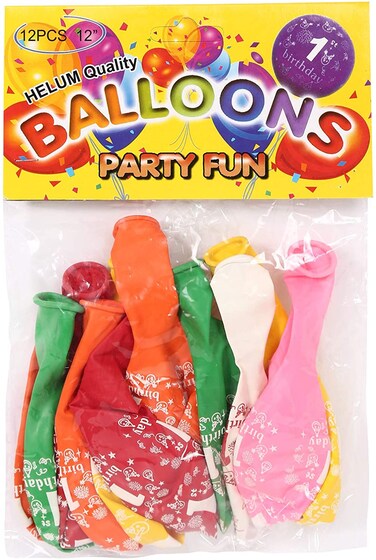 Generic Party Fun 12 Inch No. 1 Birthday Balloons - Pack Of 12 Pieces, Multi Color