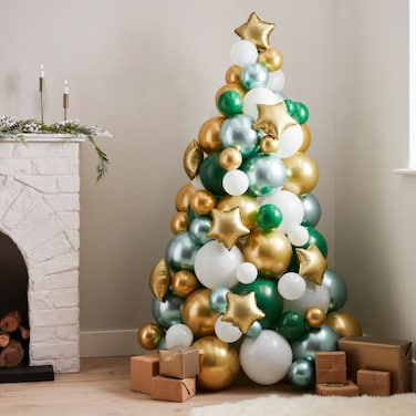 Up your balloon game this Christmas and create a magical Christmas experience with our Balloon Christmas Tree Kit. With over 100 balloons included in a variety of green, gold, white and gold star balloons, we're certain your Christmas tree will be twinkling in your home. With gold stars included, make sure you don't forget to add one to the top of your tree!