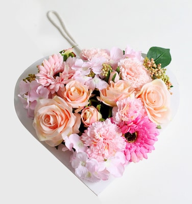 • It contains artificial flowers in beautiful colours with natural look assembled in a heart shaped wooden base.