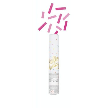 - Start the celebrations with a shower of colour using this "Hello baby" Pink confetti cannon. A simple twist action releases dark pink and light pink tissue shapes with a loud bang, making these party cannons ideal for adding thrills to a girl baby shower or gender reveal party.