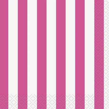 These party napkins are disposable, making after party cleanup quick and easy. Coordinate these drink napkins with other hot pink striped party supplies and solid color decorations to complete your birthday party, bachelorette party, Valentine's Day party, or other special occasion. Hot Pink Striped Drink Napkins measure 5" x 5" and are sold in a package of 16.