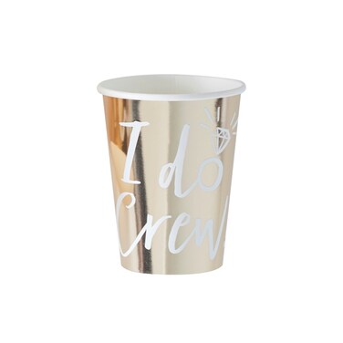 The gold foiling will shine bright around the party and the cute ring detailing will be loved by everyone - a chic cup for trendy hen celebrations.Pair our 'I Do' cup with our gold foiled 'I Do napkin' for a hen worthy celebration - Don't forget your I Do Crew Sash! Have Fun!Each pack contains 8 cups measuring 9cm (H) by 8.5cm (W). Each cup holds 9oz.