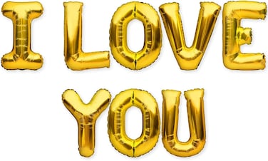 - PACKAGE INCLUDES- 8 pcs gold "I LOVE YOU" letter balloons (uninflated) and 1 pcs straw to help blow the balloons. Each letter balloon measures about 16 Inches.