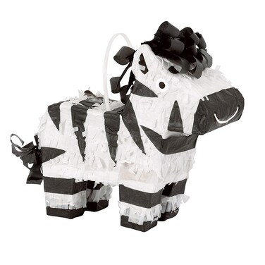 This zebra decoration also makes a super cool centrepiece to arrange on your table. Shop the rest of our jungle themed party supplies to complete your celebration.Please note that this mini pinata is intended as a table decoration or party favour, not as a traditional pinata which would be hung from a ceiling and hit with a pinata buster to break open.1 Mini Zebra Pinata Favour DecorationMini pinata favour measures 20 cm x 17 cm x 7 cm (8" x 6.75" x 2.75")Ideal table decoration or favour box for a Jungle theme partyFill with sweets and small party favoursCombine with other Jungle Animal Birthday party supplies from Unique Party