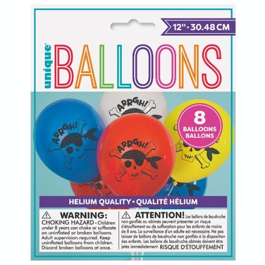 - Set the scene for swashbuckling adventure at your kid's birthday party with these fun Latex Ahoy matey Pirate Latex Balloons. The bright colours and classic image of a skull and crossbones make these latex balloons wonderful for a pirate birthday party.