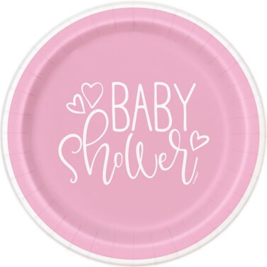 Shop all of our pink baby shower party supplies to add extra colour to the mom-to-be's special day.Details:• 8 Pink Hearts Baby Shower Plates• Baby Shower Paper Plates measure 7"• Disposable Plates make clean up quick and easy• Perfect for a girl baby shower• Combine with other Pink Hearts Baby Shower supplies