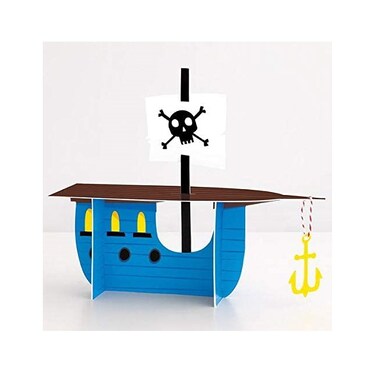 PACKAGE INCLUDES: 1 pirate ship centrepiece.COLORFUL DESIGN: This centrepiece features a blue pirate ship designed with a skull and bones flag and a gold anchor.STUNNING DECORATION: This is the perfect centrepiece to use on your birthday party table.PREMIUM QUALITY: This centrepiece is made of durable materials.STAND ALONE: This centrepiece can stand on its own.