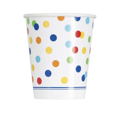 Then, when the celebration is over, just throw all these disposable cups in the bin for a quick and easy clean-up. Pack of 8 Rainbow Polka Dot Party CupsPaper cups hold approximately 9fl oz (266ml)