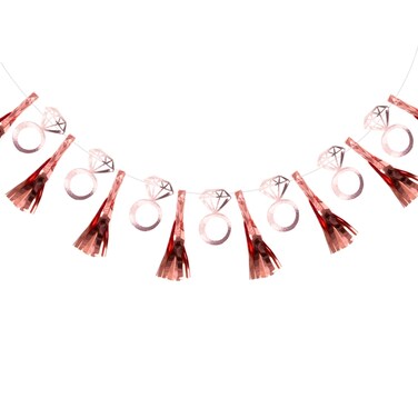 It creates a great backdrop for cute photos also!An elegant decoration for the chicest of brides this rose gold foiled tassel garland is a must for any fashionable hen do. Hang the garland on walls and furniture for gorgeous party décor.Each pack contains 1 garland which with 8x tassels and 9x ring flags. Tassels measure: 5cm (W) x 20cm (H). Rings measure 56cm (W) x 9cm (H). Total length 2m.