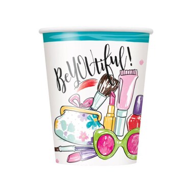 Throw the ultimate girl's slumber party with all our fun spa party supplies.Details:• 8 Spa Birthday Party Paper Cups• Spa Party Paper Cups hold 9oz• Cute design for serving cold party drinks• Disposable and made in the USA• Great for a girl's sleepover party or spa theme party• Combine with more Spa Birthday party supplies