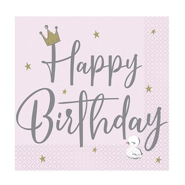 COLORFUL DESIGN: These luncheon napkins feature a "Happy Birthday" headline designed with a gold crown and stars in pink background.HIGHLY ABSORBENT: These napkins are made of soft and durable paper.KEEP YOUR TABLE CLEAN: Use these napkins to keep your tables clean and stain-free.ADD COLOR TO YOUR PARTY: These luncheon napkins will add some colour to your party table.