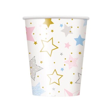 - Our cute and colourful Twinkle Twinkle Little Star Paper Cups are essential for serving cold drinks at your baby's special party. Decorated with stars, these birthday party cups are darling for any girl or boy's 1st birthday party. Use these 9-ounce paper cups to match the Twinkle Twinkle party theme at your gender reveal baby shower. Best of all, these disposable cups will make after-party cleanup quick and easy.