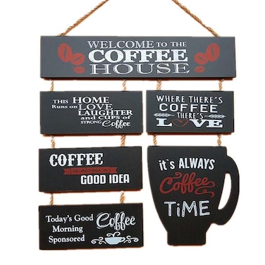 Welocme To The Coffee House Wooden Signboard Wall Hanging Black Color