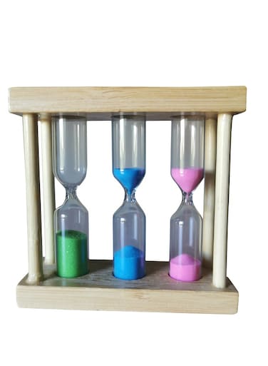 Three-In-One Designed Hourglass Wooden Framed Sandglass Sand Timer Clock Kitchen Tools. Sandglass adds a polished touch to your home or office. Use these durable and colored sand timers to help you stay focused and productive for longer. What's more, sand timers can Help your kids develop a strong sense of time and do things more efficiently.Used widely: Wooden Sand Hourglass Ideal timer for timing cooking, playing games, exercising, reading or studying, sauna, brushing your teeth, taking a rest, and so on. Colored sand timers are a great Gift for Your Children.