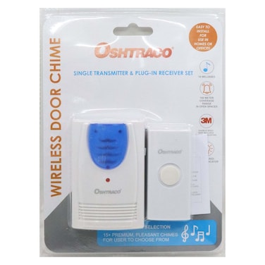The Oshtraco Single Transmitter and Plug-in Receiver Set Wireless Door Chime is a convenient and easy-to-use doorbell solution.