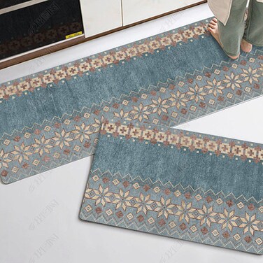 2 PCS Set Large Kitchen Mats With Thick Non Slip Bottom For Kitchen Floor With Beautiful Design (50×80CM And 50×160CM)