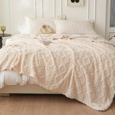 Luna Home Throw Blanket Super Soft, Ivory Color, Woven Style
