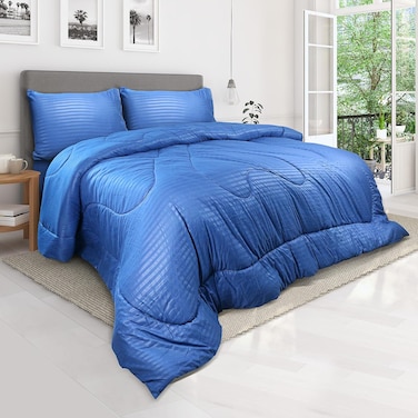 Hotel Linen Klub Down Alternative Comforter Set -Ultra Soft Brushed Stripe Microfiber Fabric, 200GSM Soft Fibersheet Filling, Size: Double 220 x 240cm, Color: Royal Blue