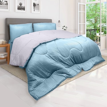 This Reversible Comforter Set from Hotel Linen Klub is the perfect addition to any bedroom. It is made from 100% microfiber, making it soft, durable, lightweight, and cozy. It is designed to keep you warm and comfortable throughout the night. The modern stripe design is sure to give your bedroom a stylish look. The lightweight material makes this comforter easy to transport, so you can bring it to where you need it most. With this comforter set, you can enjoy a sound sleep and wake up feeling refreshed and prepared to tackle the day. Get this Reversible Comforter Set from Hotel Linen Klub today and see the difference it makes to your bedroom.