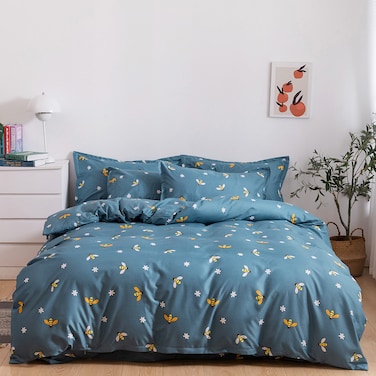 6-Piece Double Size Duvet Cover Set 1 Duvet Cover + 1 Flat Sheet + 4 Pillow Cases Microfibre BOLIDE