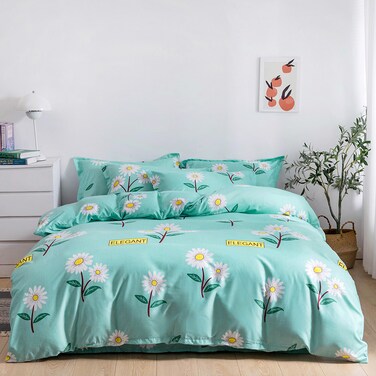 PRODUCT DIMENSIONS - This Double size set includes 1 duvet cover 200x230 cm / 1 flat bedsheet 220x280 cm and 4 pillow cases 48x74 cm / 80 GSM
