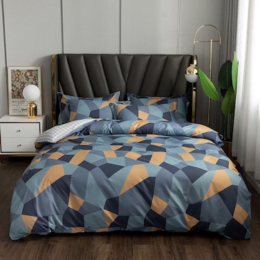 6-Piece Double Size Duvet Cover Set 1 Duvet Cover + 1 Flat Sheet + 4 Pillow Cases Microfibre Hoki