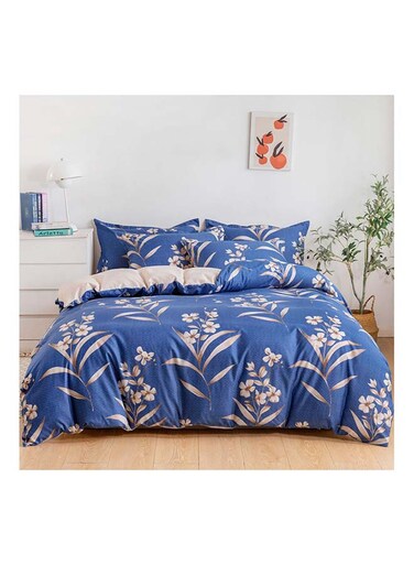 6-Piece Double Size Duvet Cover Set Microfiber Wedgewood 1 Duvet Cover 200x230 cm, 1 Flat Sheet 220x280 cm, 4 Pillow Cover 48x74 cm Multicolour