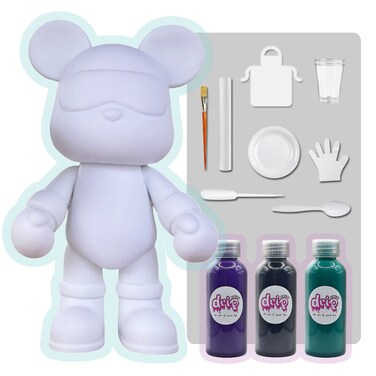- 🐻COLOR PALETTE: This kit includes a total of 3 acrylic paints bottles 2 oz / 60 ml each, with the colors: Dark-Purple, Black, Blue-Green. 🐻COMPLETE KIT: Everything you need is included, one money saver cool bear toy 9 inch / 23 cm, acrylic paints, apron, clear cups, plate, gloves, paintbrush, pipette, spoon and table sheet. Each money saver cool bear has its own unique signature neckless, become part of our family! 🐻FLUID ACRYLIC POURING ART: A creative and fun activity for everyone: toddlers, boys, girls, teens and adults, full of your creativity, your heart, and your love. 🐻CHOOSE YOUR FAVORITE: Available in different sizes and colors palette. Let your creativity flow and get creative with colors, techniques and effects to make your own cool drip figurine unique and beautiful, collect them all. 🐻FUN GROUP ACTIVITY: The art of making fun memories, share the happiness and creativity with people! friends, family and colleagues. Interactive Social fun activity, inspire, entertain and engage, groups, classes, parties and team building. 🐻GREAT GIFT IDEA: The perfect present for birthdays, Christmas, Baby shower, Teachers gifts, parties, after school fun, summer camps, holidays or just because! Customizable handmade giveaway. 🐻SAFE MATERIAL: High quality vibrant colors, rich pigments, signature acrylic color paints, eco-friendly, non-toxic material and emits no foul odors.