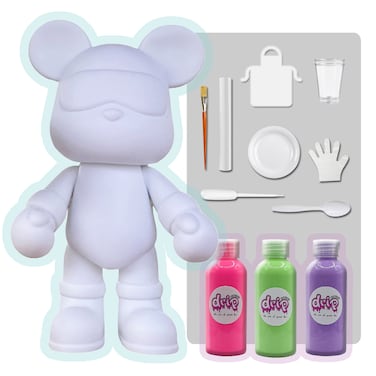- 🐻COLOR PALETTE: This kit includes a total of 3 acrylic paints bottles 2 oz / 60 ml each, with the colors: Fluorescent-Pink, Mint-Green, Light-Purple. 🐻COMPLETE KIT: Everything you need is included, one money saver cool bear toy 9 inch / 23 cm, acrylic paints, apron, clear cups, plate, gloves, paintbrush, pipette, spoon and table sheet. Each money saver cool bear has its own unique signature neckless, become part of our family! 🐻FLUID ACRYLIC POURING ART: A creative and fun activity for everyone: toddlers, boys, girls, teens and adults, full of your creativity, your heart, and your love. 🐻CHOOSE YOUR FAVORITE: Available in different sizes and colors palette. Let your creativity flow and get creative with colors, techniques and effects to make your own cool drip figurine unique and beautiful, collect them all. 🐻FUN GROUP ACTIVITY: The art of making fun memories, share the happiness and creativity with people! friends, family and colleagues. Interactive Social fun activity, inspire, entertain and engage, groups, classes, parties and team building. 🐻GREAT GIFT IDEA: The perfect present for birthdays, Christmas, Baby shower, Teachers gifts, parties, after school fun, summer camps, holidays or just because! Customizable handmade giveaway. 🐻SAFE MATERIAL: High quality vibrant colors, rich pigments, signature acrylic color paints, eco-friendly, non-toxic material and emits no foul odors.