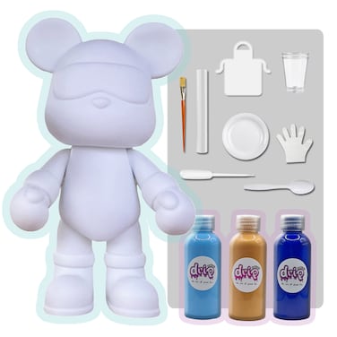 - 🐻COLOR PALETTE: This kit includes a total of 3 acrylic paints bottles 2 oz / 60 ml each, with the colors: Light-Blue, Gold, Dark-Blue. 🐻COMPLETE KIT: Everything you need is included, one money saver cool bear toy 9 inch / 23 cm, acrylic paints, apron, clear cups, plate, gloves, paintbrush, pipette, spoon and table sheet. Each money saver cool bear has its own unique signature neckless, become part of our family! 🐻FLUID ACRYLIC POURING ART: A creative and fun activity for everyone: toddlers, boys, girls, teens and adults, full of your creativity, your heart, and your love. 🐻CHOOSE YOUR FAVORITE: Available in different sizes and colors palette. Let your creativity flow and get creative with colors, techniques and effects to make your own cool drip figurine unique and beautiful, collect them all. 🐻FUN GROUP ACTIVITY: The art of making fun memories, share the happiness and creativity with people! friends, family and colleagues. Interactive Social fun activity, inspire, entertain and engage, groups, classes, parties and team building. 🐻GREAT GIFT IDEA: The perfect present for birthdays, Christmas, Baby shower, Teachers gifts, parties, after school fun, summer camps, holidays or just because! Customizable handmade giveaway. 🐻SAFE MATERIAL: High quality vibrant colors, rich pigments, signature acrylic color paints, eco-friendly, non-toxic material and emits no foul odors.