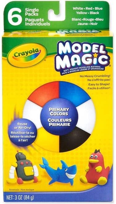 CRAYOLA-Crayola Model Magic Variety Pack. The Model Magic Variety Pack is a colorful assortment of Model Magic modeling material. Model magic is a fun, unique, air-dry modeling material that allows kids to create keep able arts and crafts. Model Magic comes soft and pliable for easy use. Dried Model Magic crafts can be decorated with markers, acrylic paints and watercolors. This variety pack includes six 0.5oz bags of Model Magic in the following secondary colors: (2) white, orange, green, purple and brown. This kit is perfect for birthday party activities or other children gatherings. Recommended for children ages 3 and up. Conforms to ASTM D4236. Made in USA.