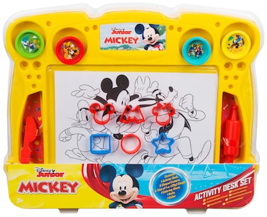 - Mickey Roadster Dough Activity Desk Set includes 4 x 1oz dough, 6 x cutters, 1 x roller, 1 x knife, 1 x colouring sheet
