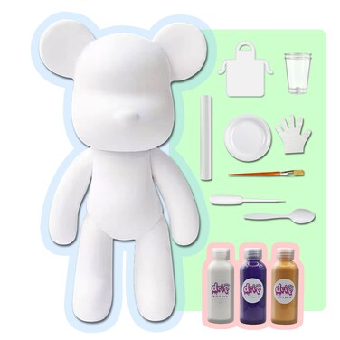 - 🐻COLOR PALETTE: This kit includes a total of 3 acrylic paints bottles 2 oz / 60 ml each, with the colors: White, Dark-Purple, Gold. 🐻COMPLETE KIT: Everything you need is included, one bear figure 9 inch / 23 cm, acrylic paints, apron, clear cups, plate, gloves, paintbrush, pipette, spoon and table sheet. Each bear has its own unique signature neckless, become part of our family! 🐻FLUID ACRYLIC POURING ART: A creative and fun activity for everyone: toddlers, boys, girls, teens and adults, full of your creativity, your heart, and your love. 🐻CHOOSE YOUR FAVORITE: Available in different sizes and colors palette. Let your creativity flow and get creative with colors, techniques and effects to make your own drip bear unique and beautiful, collect them all. 🐻FUN GROUP ACTIVITY: The art of making fun memories, share the happiness and creativity with people! friends, family and colleagues. Interactive Social fun activity, inspire, entertain and engage, groups, classes, parties and team building. 🐻GREAT GIFT IDEA: The perfect present for birthdays, Christmas, Baby shower, Teachers gifts, parties, after school fun, summer camps, holidays or just because! Customizable handmade giveaway. 🐻SAFE MATERIAL: High quality vibrant colors, rich pigments, signature acrylic color paints, eco-friendly, non-toxic material and emits no foul odors.