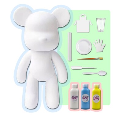 DIY CREATE YOUR OWN UNIQUE ACRYLIC FLUID POURING PAINT BEAR (9 inch - 23 cm) COMPLETE SET, colors: White, Light-Blue, Lemon-Yellow. Arts and Crafts, Customize Handmade Creative Birthday Gift